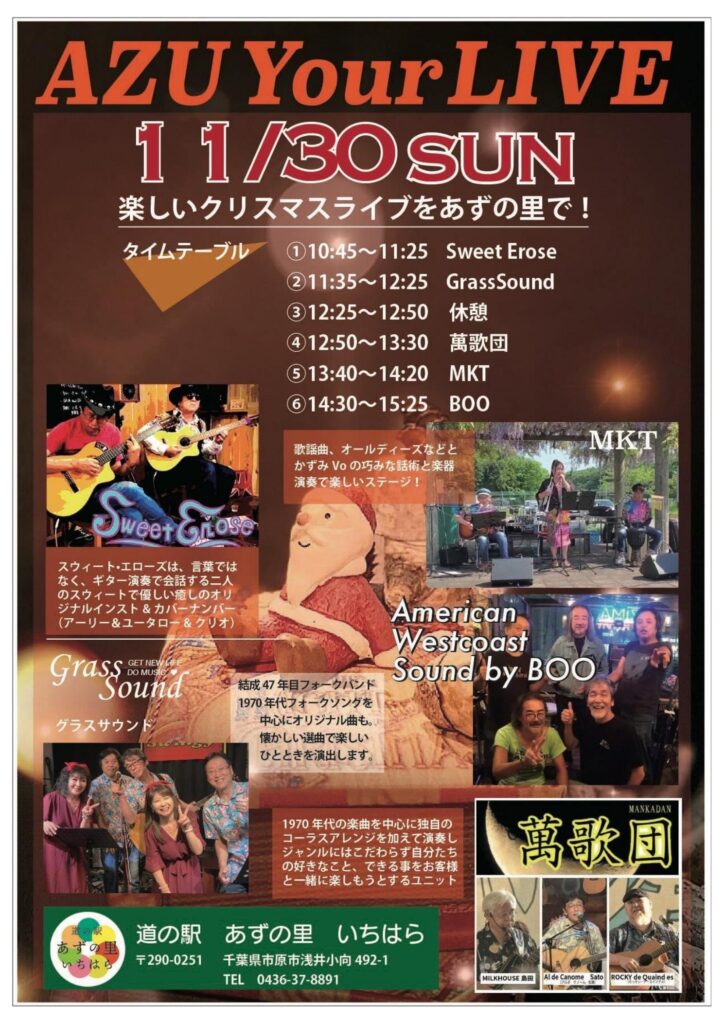 道の駅あずの里いちはらで、心躍るクリスマスライブを開催します!
