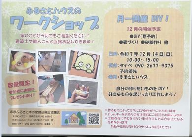道の駅 あずの里いちはら 「ふるさとハウス」にて、楽しいワークショップを開催します!